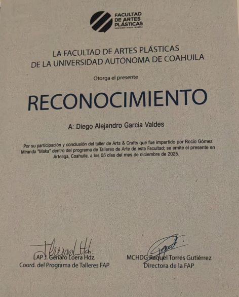 | 25164424 | LDG | Primer | Agosto-Diciembre 2026 | Taller de Arts & Crafts impartido por Rocio Gomez Miranda (Maka) | 2025-12-05 | 20 | Descargar | Increible taller, lo recomiendo muchisimo. | García Valdés Diego Alejandro |