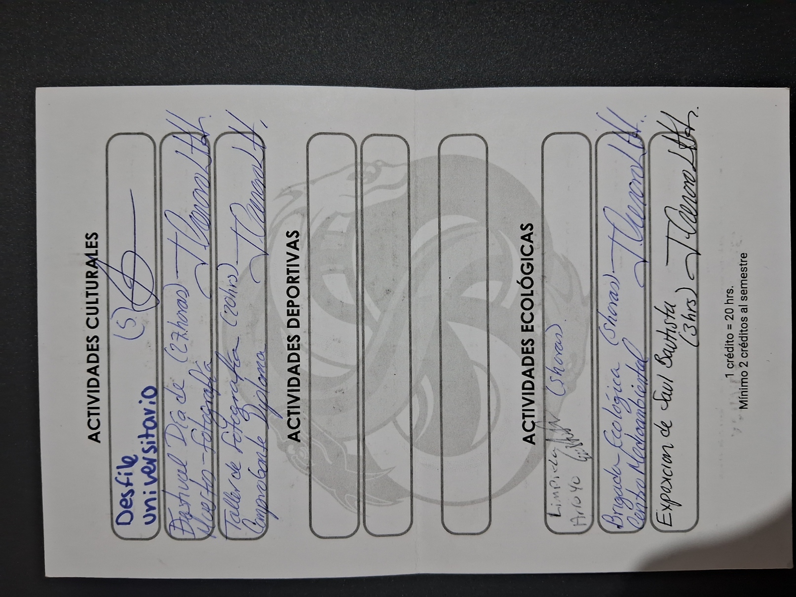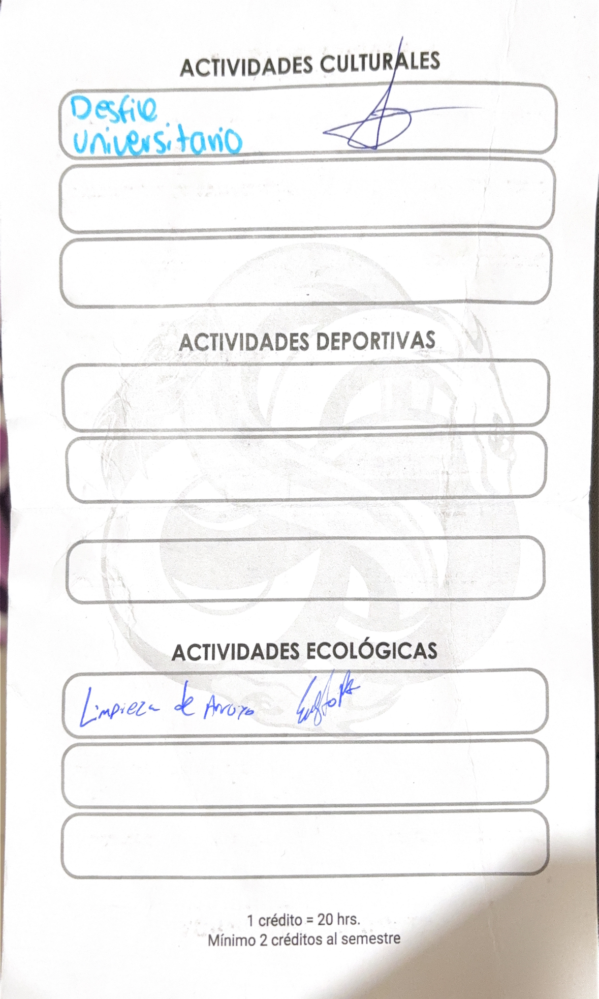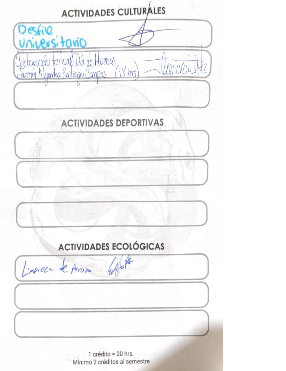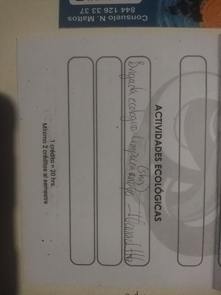 | 25154670 | LDG | Primer | Agosto-Diciembre 2026 | Limpieza Arroyo | 2025-09-26 | 6 | Descargar | Foto del carnet de actividades porque no tengo fotos de la actividad | Hernández García Rodrigo |