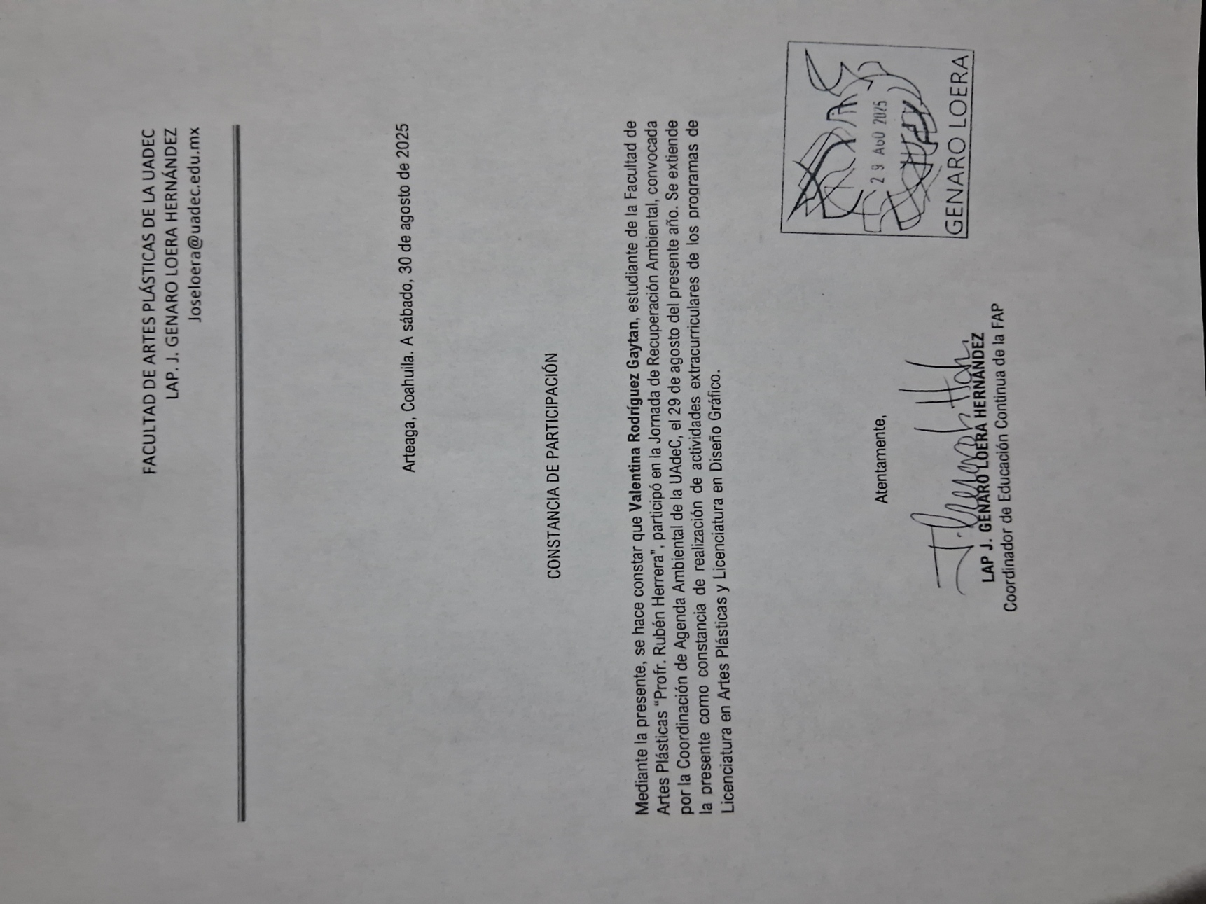 | 25037323 | LDG | Primer | Agosto-Diciembre 2025 | Desfile universitario | 2025-09-11 | 5 | Descargar | | Luna Karolina Salazar Lozano |