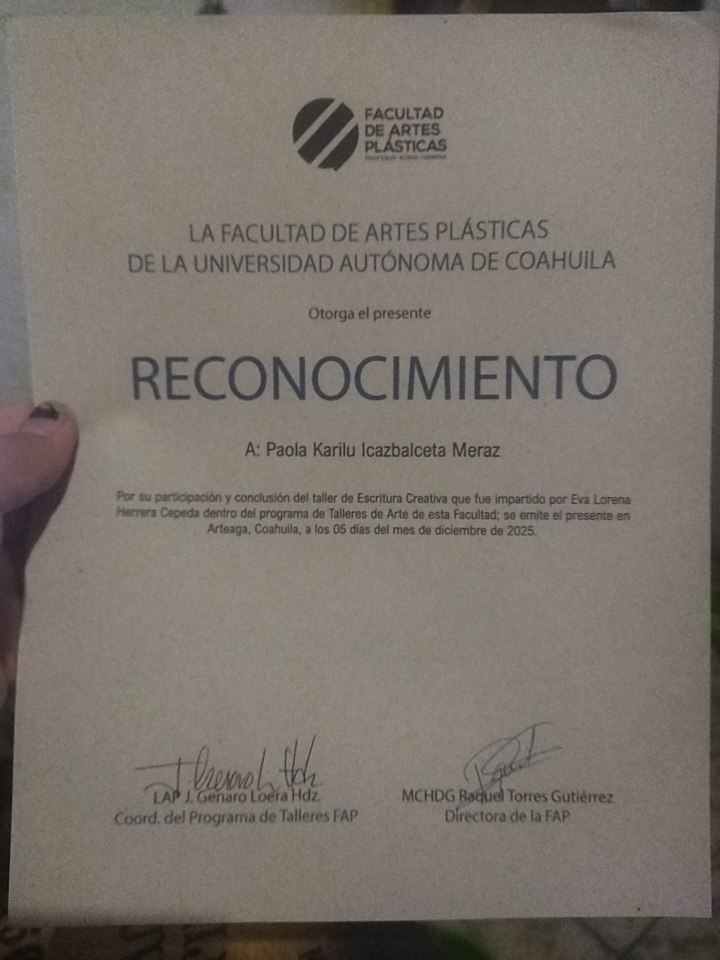 | 25025636 | LAP | Primer | Agosto-Diciembre 2026 | Taller de Escritura Creativa | 2025-12-05 | 20 | Descargar | Puse la fecha de entrega del reconocimiento, no sé si sea la fecha que pide ahí | Icazbalceta Meraz Paola Karilu |