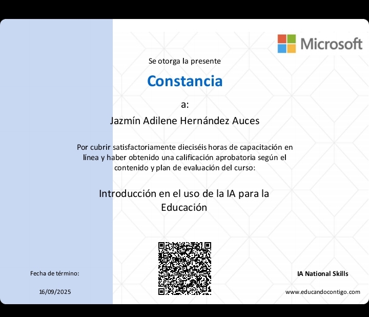| 21074063 | LAP | Tercer | Agosto-Diciembre 2024 | Introducción en el uso de la Ia para la educación | 2025-09-16 | 16 | Descargar | | Hernández Auces Jazmín Adilene |