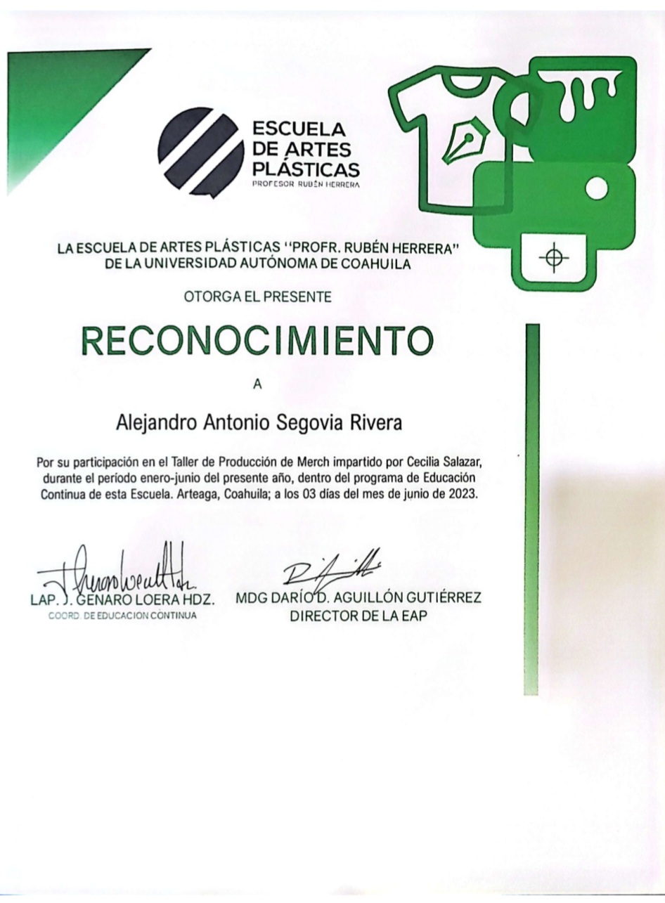 | 21289959 | LDG | Octavo | Enero-Junio 2022 | Taller de creacion de merch | 2023-06-03 | 20 | Descargar | | Segovia Rivera Alejandro Antonio |